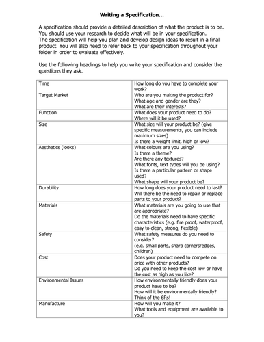 By drawing up a design specification document at the initial stage of product development, you can save time and money, how to write a spcification, how to write a spcification the perfect product that meets your expectations, make the process easier for designers, and much more, how to write a spcification. The role of specification in the design process has an impact on its development. The specification is crucial in the product development process and it has been discovered to play a number of roles, including:.